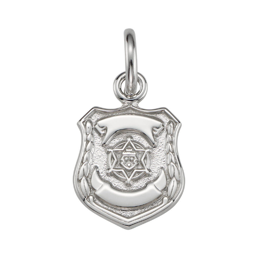 The Police Badge charm which is handcrafted in America, has two engravable areas. You may choose from Name; Precinct Number; City, State,Borough, or Municipality Name; Badge Number; or Rank.